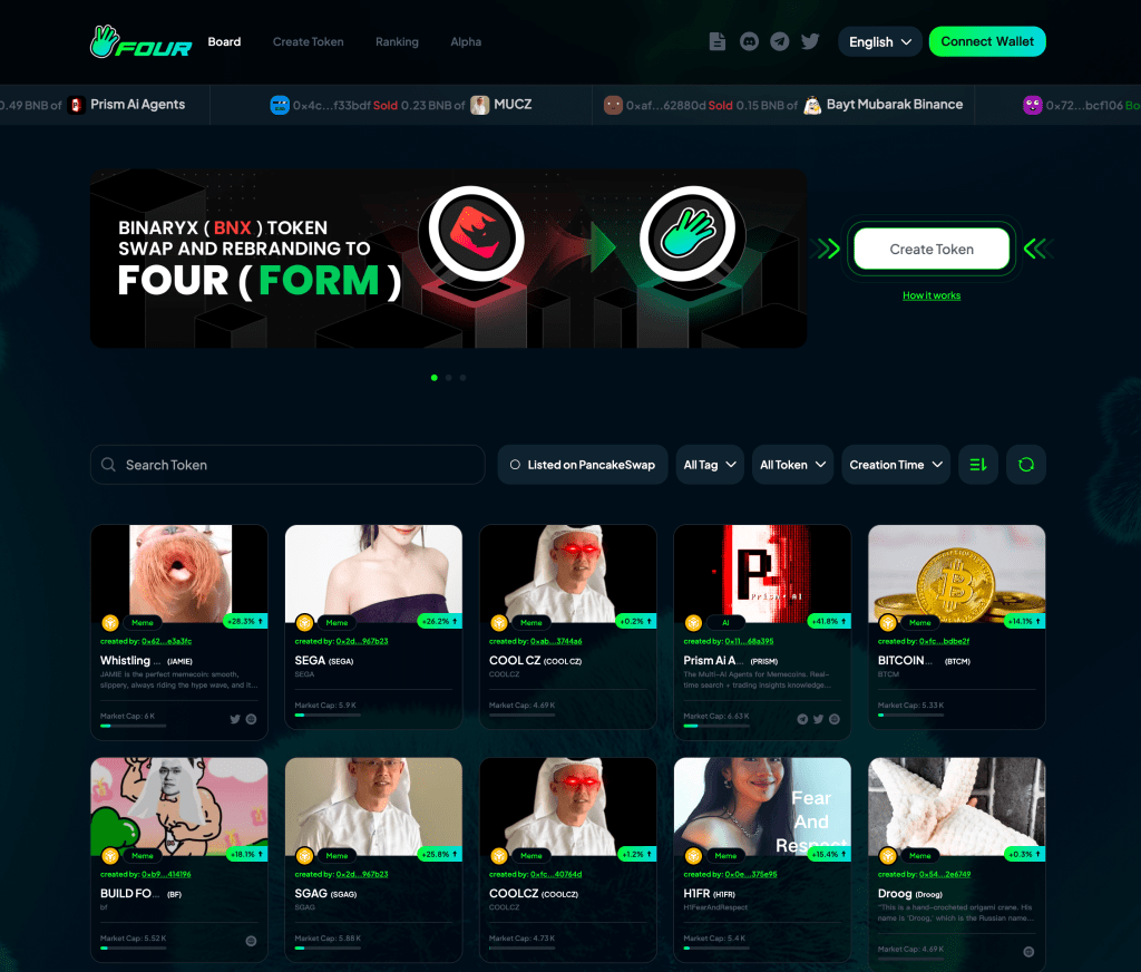 Four.meme leverages BNB Chain for fast, low-cost transactions and deep liquidity support. BSC’s efficiency and security lower the entry barrier, attracting more users.
